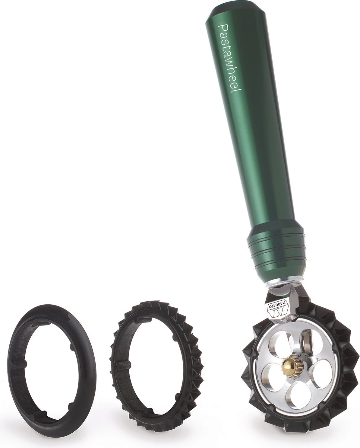 La rueda de corte Pastawheel es un accesorio innovador y fácil de usar. El mango antideslizante está fabricado en aluminio anodizado, para que la rueda dure más. El pasador central hace que las tres ruedas se intercambien rápidamente: en un abrir y cerrar de ojos puedes cambiar del corte liso al corte en zigzag estrecho o ancho.