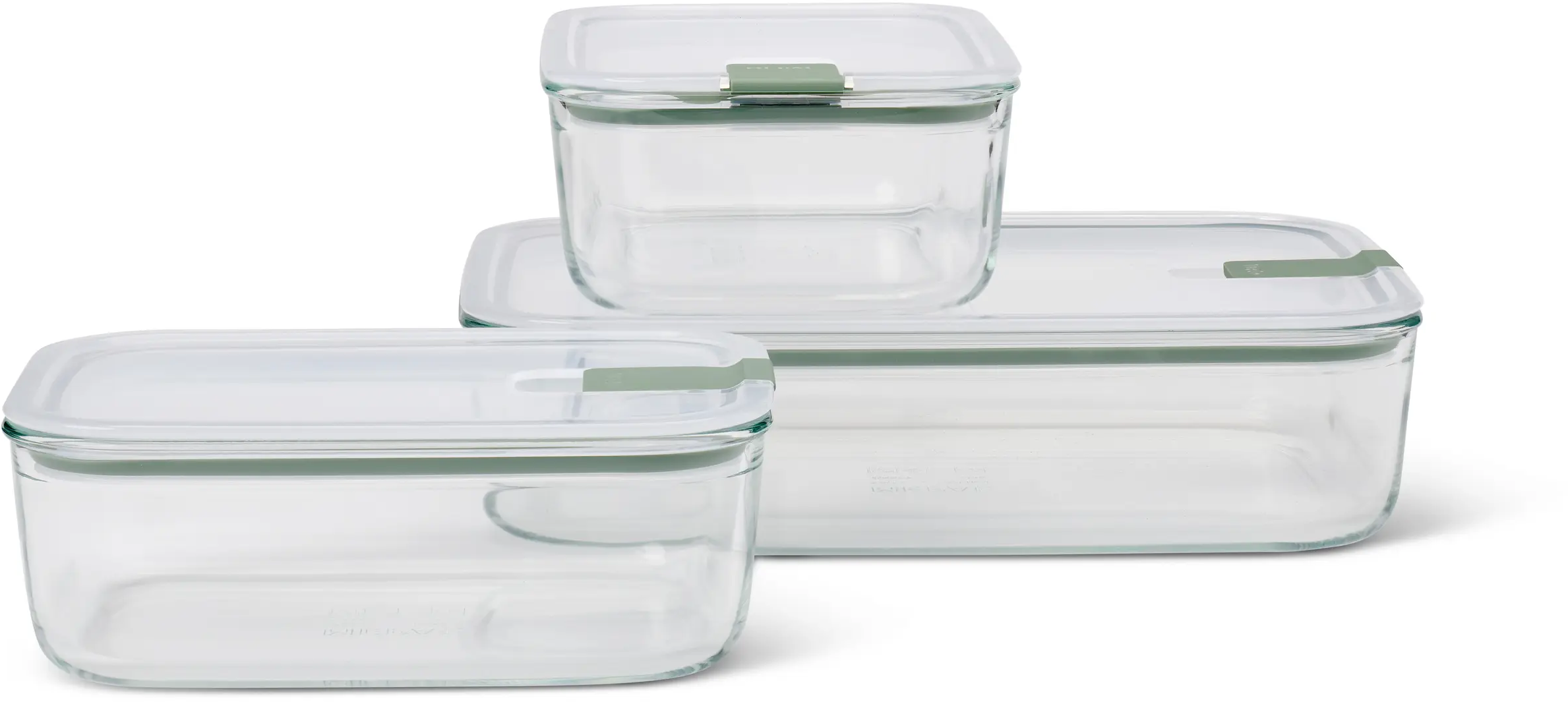 Mepal Recipientes de Vidrio EasyClip - 3 Unidades, Color Nordic Sage, 2 x 1000 ml + 2250 ml