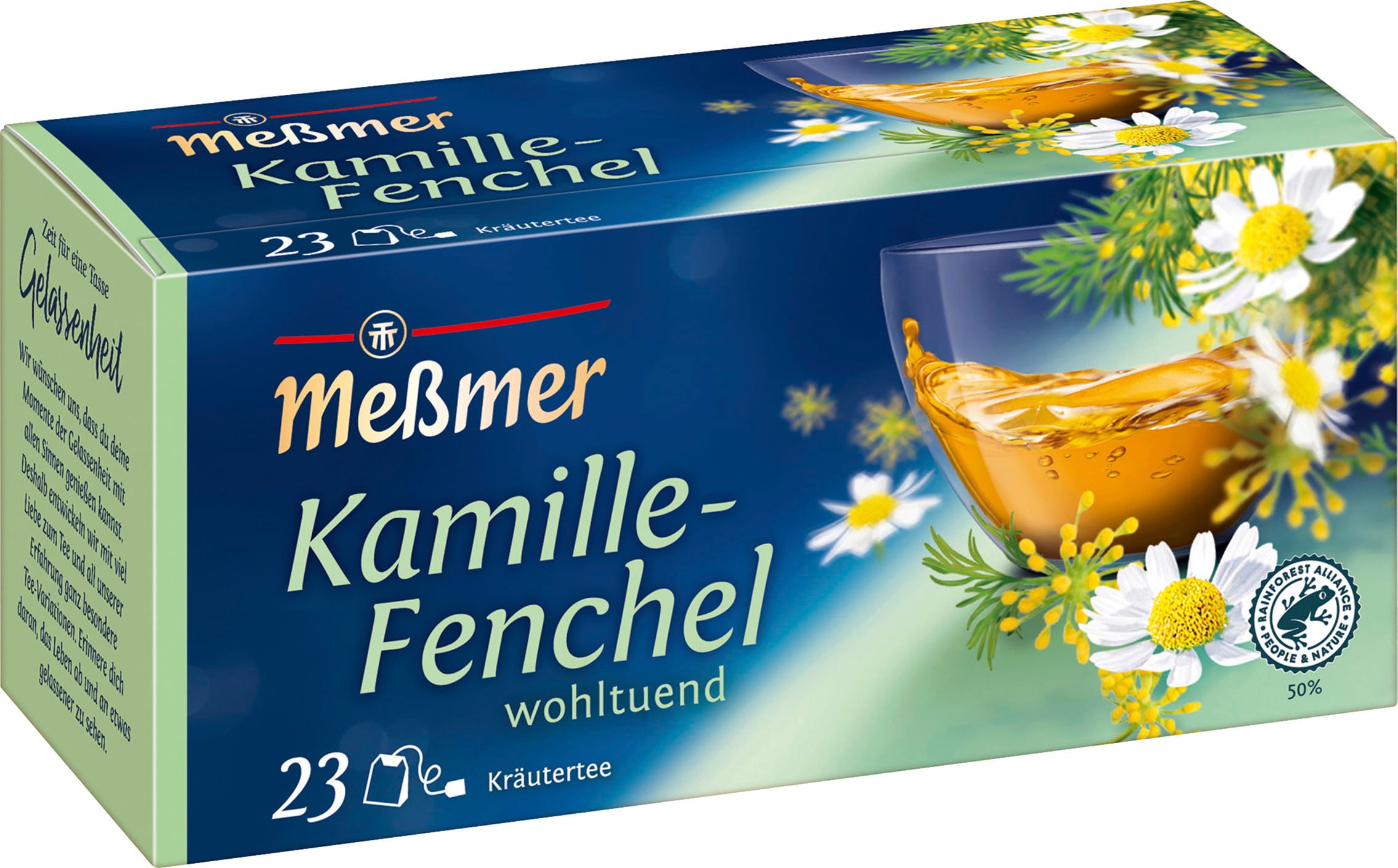 Disfruta de un momento de bienestar con la infusión de manzanilla e hinojo de Meßmer. Con un sabor aromático y naturalmente dulce, ideal para después de las comidas o por la noche.