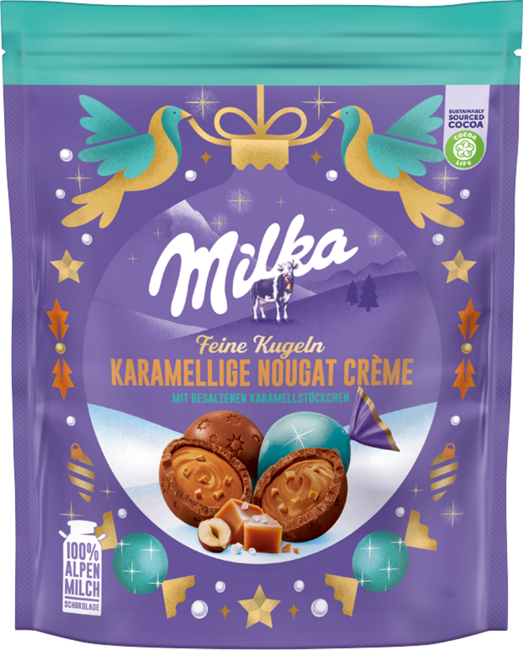 Milka Bolitas de Navidad Rellenas - Caramelo y Nougat, 90 g