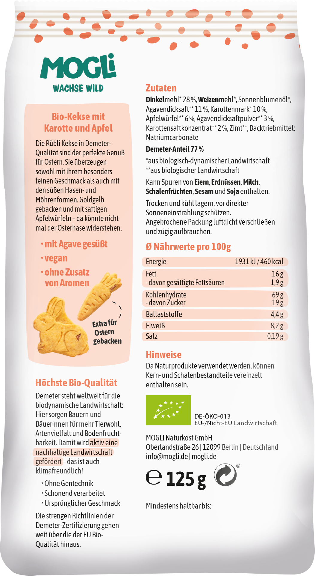 MOGLi Galletas Bio - Zanahorias y Espelta, 125 g