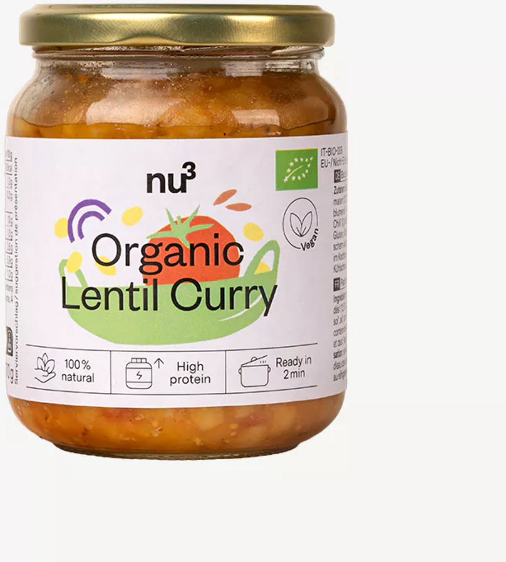El curry de lentejas amarillas ecológicas de nu3 te ofrece el auténtico sabor de la India de forma sencilla, rápida y con calidad ecológica. Las lentejas amarillas, los tomates y las cebollas constituyen la base, enriquecida con cúrcuma, chile y otras especias. El resultado es un curry de lentejas cremoso, sin aditivos artificiales, ideal para comidas rápidas en cualquier momento del día.