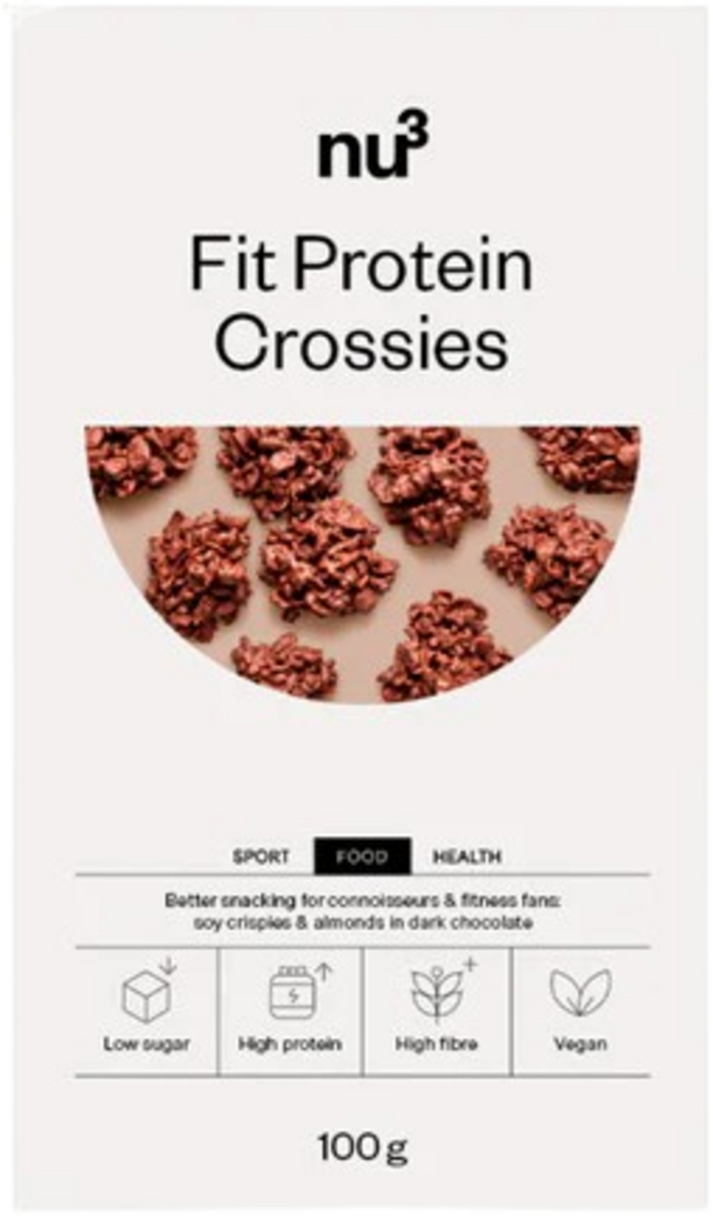 Los Fit Protein Crossies de nu3 se convertirán en tu tentempié favorito. Están repletas de nutrientes y no contienen demasiados azúcares ni hidratos de carbono. Ya sea durante un largo día de trabajo o mientras ves tu serie favorita, a veces sólo quieres picar algo dulce y estos pequeños y crujientes bocaditos son siempre la elección perfecta. Al estar edulcorados con xilitol y estevia, sólo tienen un 0,6% de azúcar, pero contienen nada menos que un 25% de proteínas vegetales. También son ricos en fibra, veganos y sin gluten, e impresionan por su sabor a chocolate.
