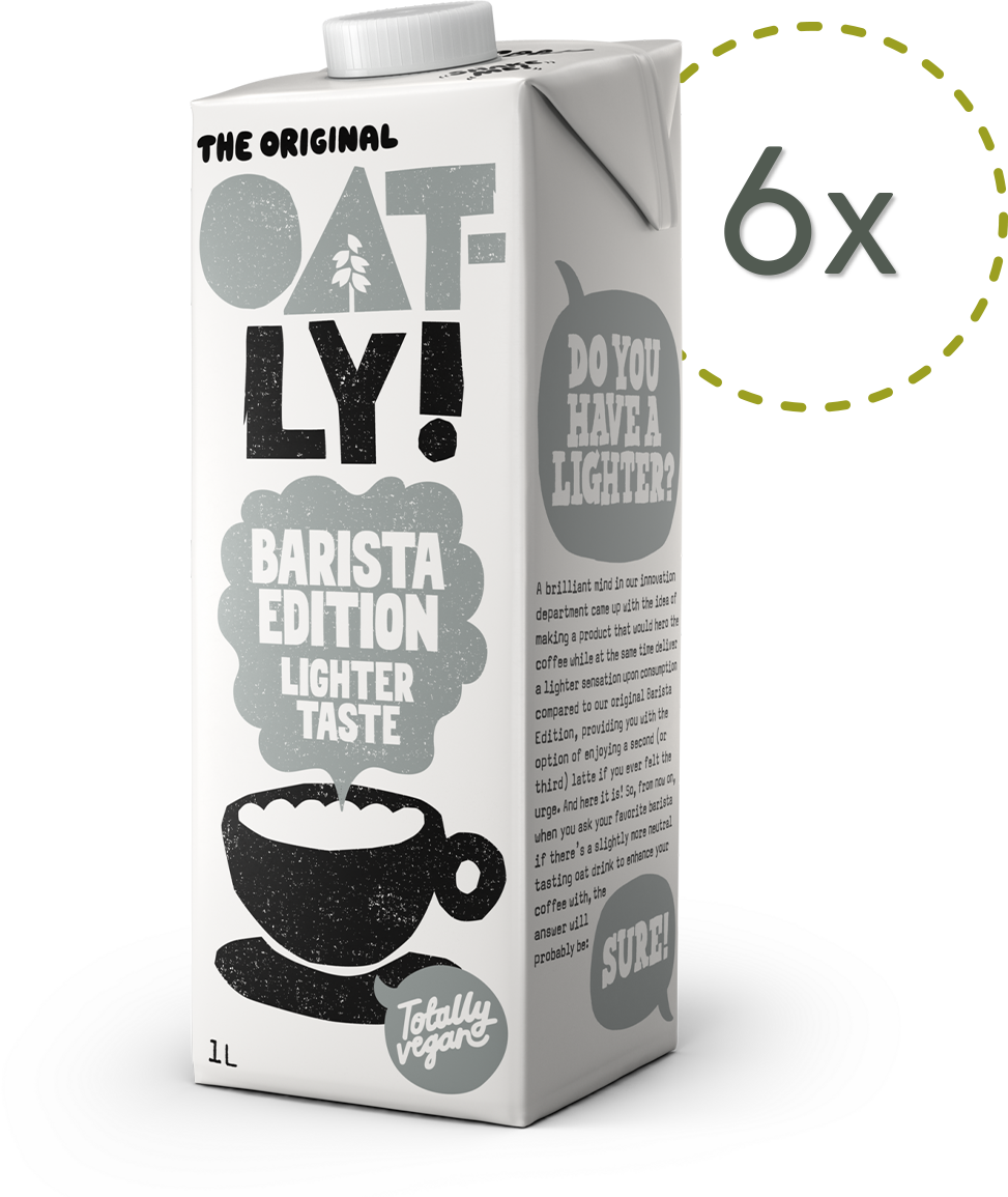 No sólo para el café: utilízala en la cocina, para pasteles o simplemente como bebida refrescante. Donde normalmente se utiliza "leche", sustituye simplemente por la bebida de avena Oatly.