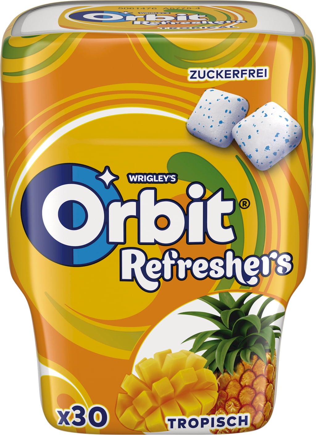 Edulcorantes (xilitol), chicle, Edulcorantes (sorbitol, manitol), humectante (glicerina), aromas, espesante (goma árabiga), acidulante (ácido málico, ácido cítrico), Edulcorantes (aspartamo, acesulfamo-k), emulsionante (lecitina de soya), agente de recubrimiento (cera de carnauba), antioxidante (Hidroxibutilanisol), colorante (azul brillante FCF (E133))