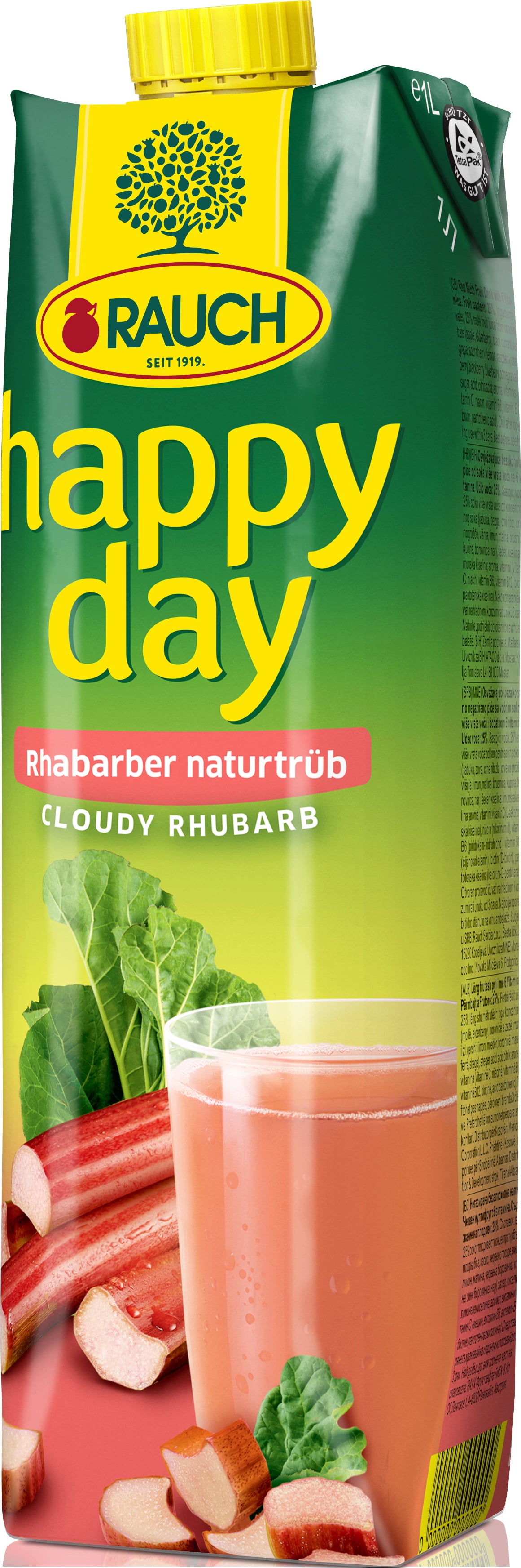 Con un 50% de zumo de ruibarbo fresco, una fina mezcla de concentrado de zumo de mora y limón y un toque de extracto de limón, Happy Day Ruibarbo ofrece una experiencia de sabor afrutado y ácido. Tomada sola o enriquecida con agua mineral, esta bebida ofrece un fantástico impulso de frescor diario.