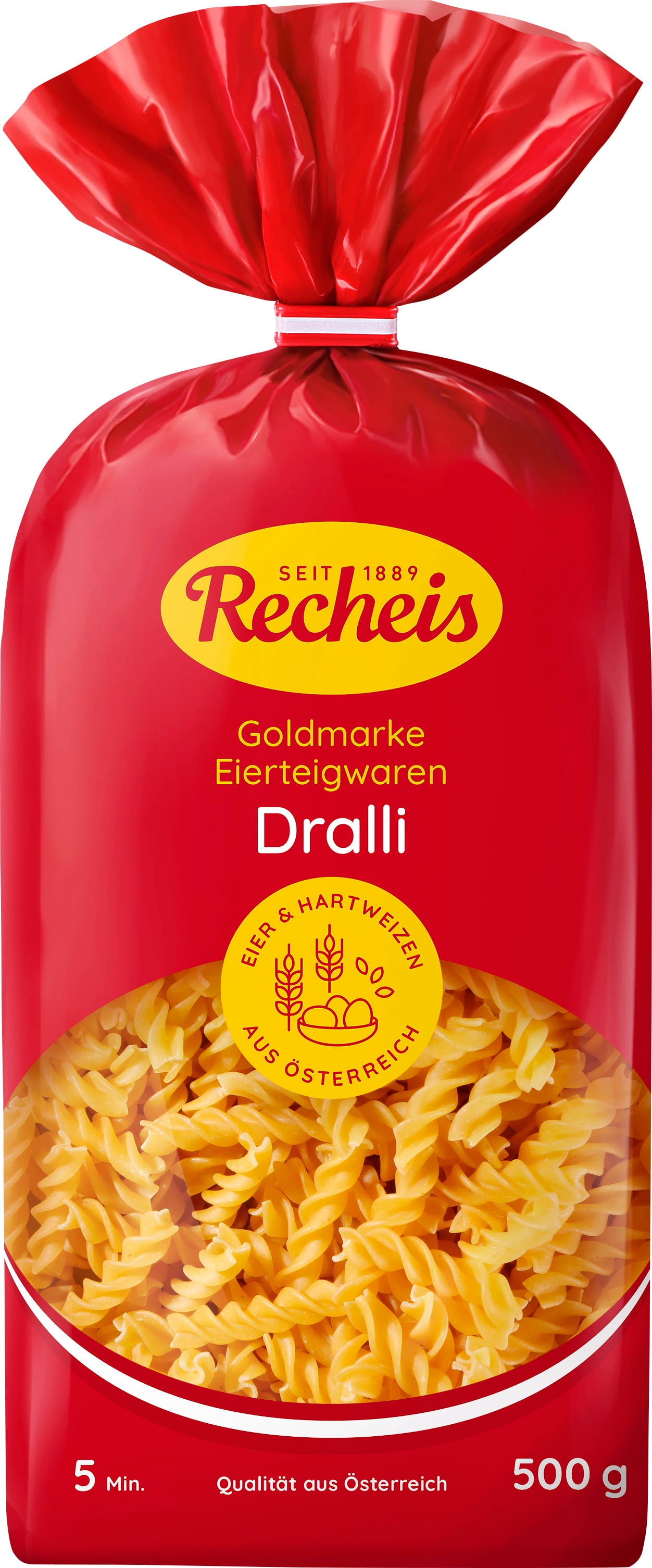 Deliciosa pasta al huevo disponible en varias formas, perfecta para llevar cada día a la mesa un primer plato diferente y sabroso. Producida con la mejor sémola de trigo duro y huevos austriacos mediante procesos de producción innovadores, la pasta al huevo de Recheis es muy fácil de cocinar y siempre es perfecta para cualquier receta. Ya se trate de ensaladas de pasta de verano, sopas, flanes o recetas refinadas, con la pasta al huevo de la línea Goldmarke puedes preparar platos simplemente deliciosos en poco tiempo.