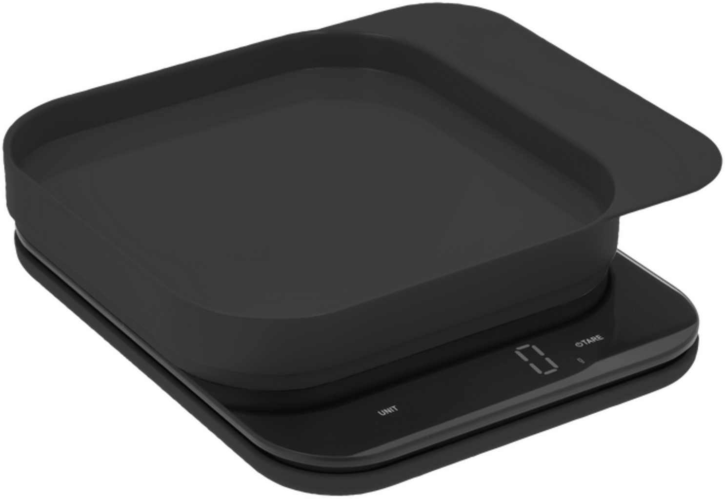 La báscula de cocina Mensura con pantalla LED es su aliado de confianza para pesar con precisión todos los ingredientes, independientemente de si se trata de pequeñas o grandes cantidades. El práctico recipiente de plástico sirve también de tapa cuando la balanza no está en uso.