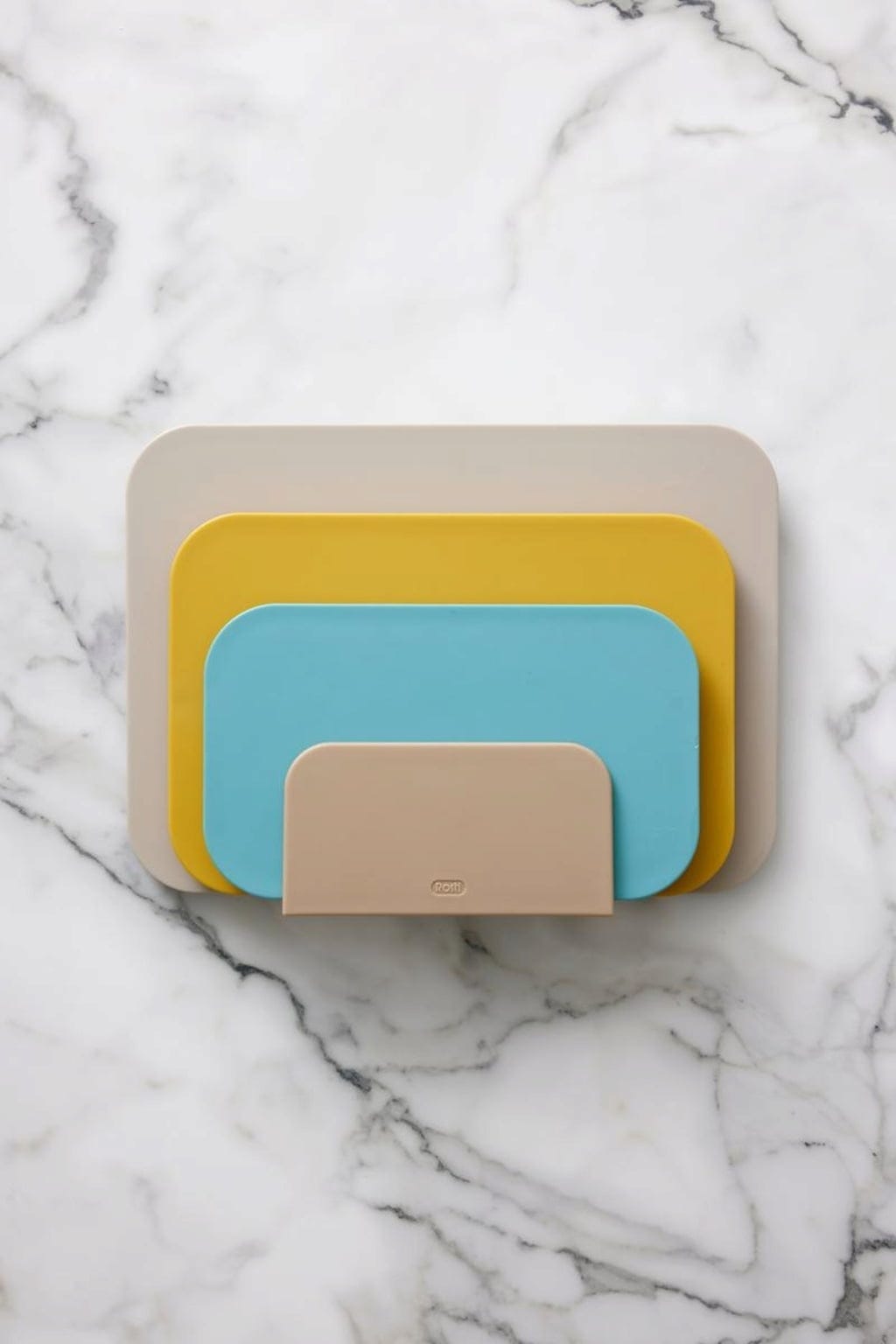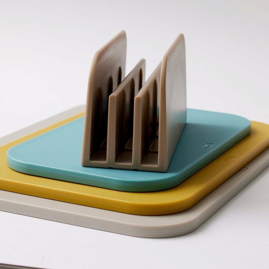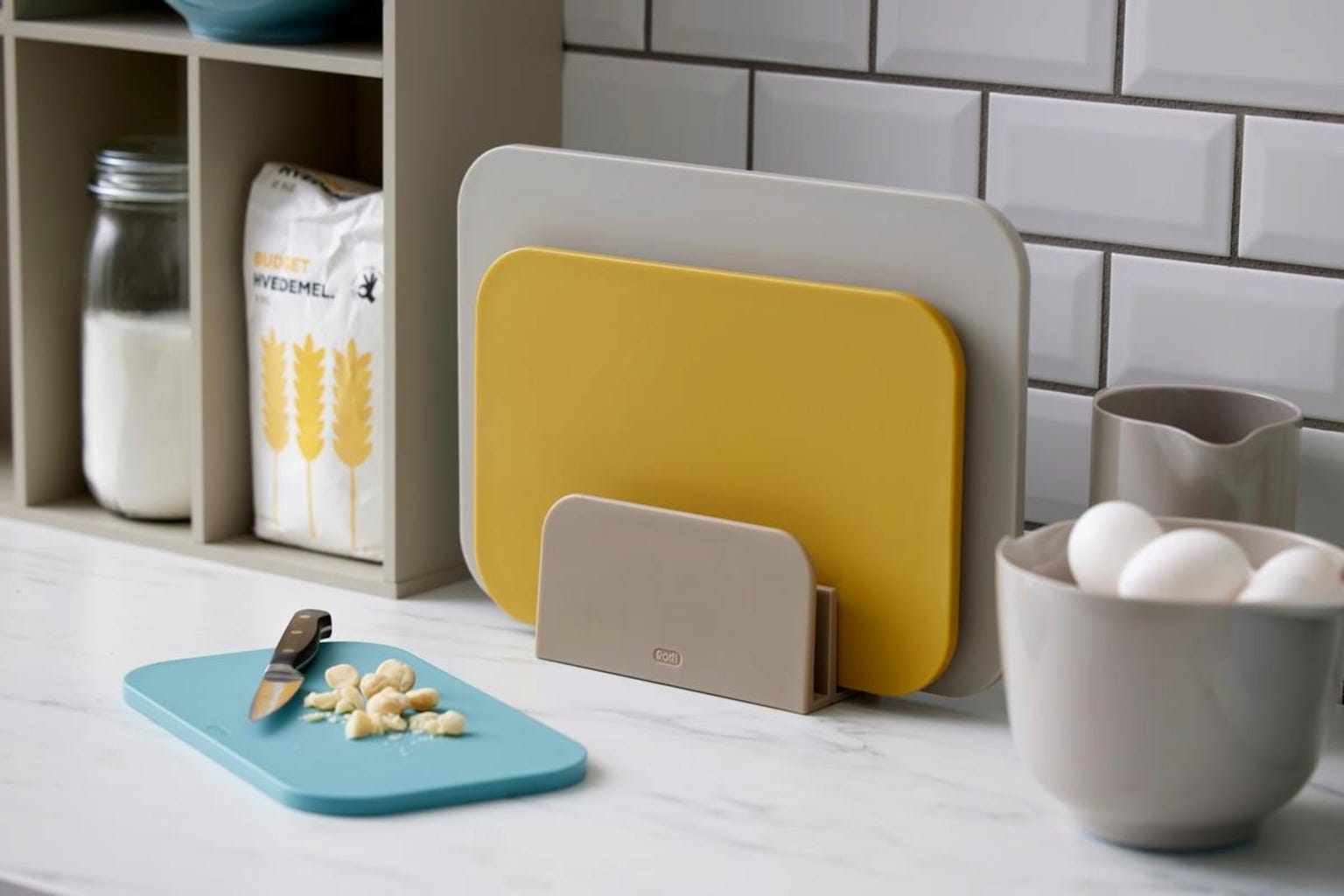 El set incluye un práctico soporte que, además de ahorrar espacio, garantiza una mayor higiene. El soporte mantiene las tablas de cortar espaciadas para que estén bien ventiladas después de usarlas. Las ranuras de la parte inferior garantizan una circulación óptima del aire, incluso cuando la tabla de cortar aún está húmeda.