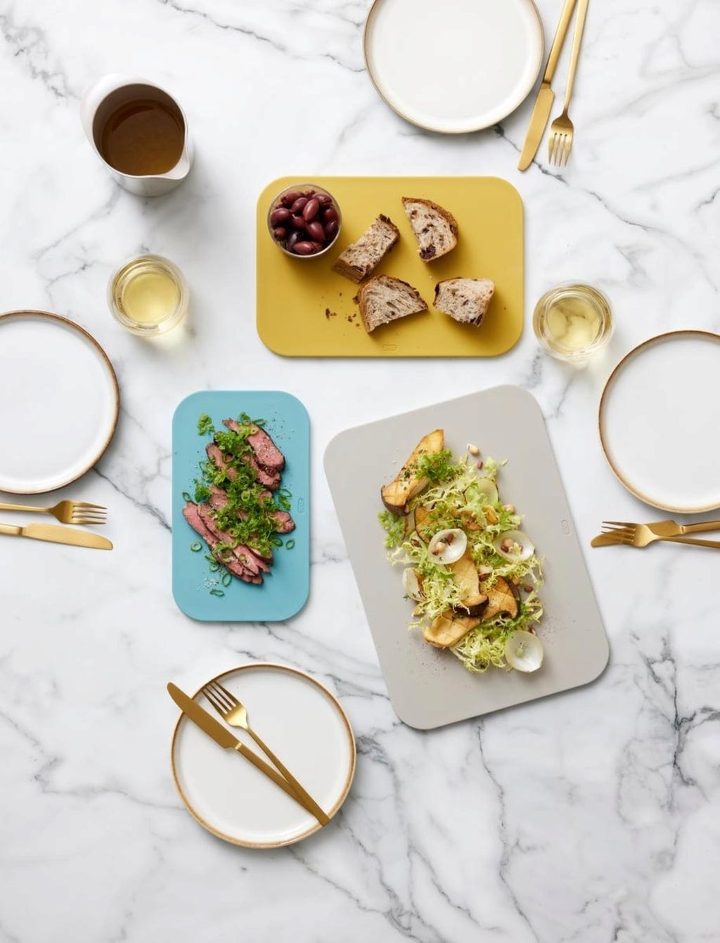 El set de tablas de cortar Choptima convence por su alta calidad y diseño minimalista. El robusto material garantiza una gran resistencia a la humedad, mantiene el cuchillo afilado durante más tiempo y es especialmente higiénico porque se puede lavar en el lavavajillas. Con un grosor de 10 mm, las tablas de cortar son sólidas y dimensionalmente estables, perfectas para el uso diario.