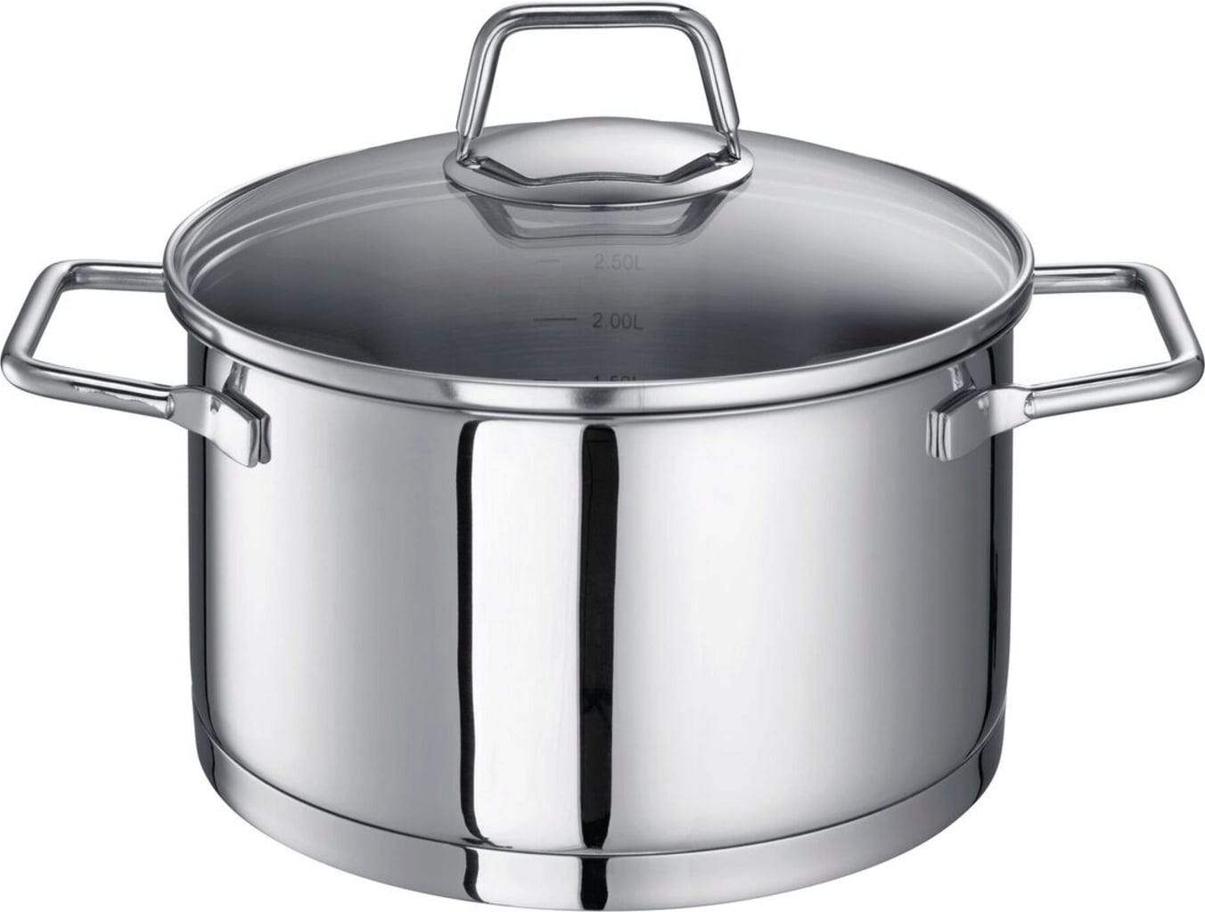 Con la cazuela para carne de Wega, todos los platos de carne quedan perfectos. La base de aluminio para placas ecotherm® se calienta rápida y uniformemente en todas las placas comunes. La escala interior y el borde de vertido son muy prácticos.