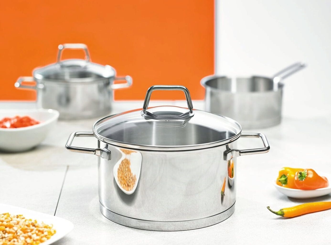 Una cazuela fiable que no debe faltar en ninguna cocina. El modelo Wega convence por su acero inoxidable 18/10 muy pulido, la base de aluminio especial para todas las placas ecotherm® y las asas termoaislantes.