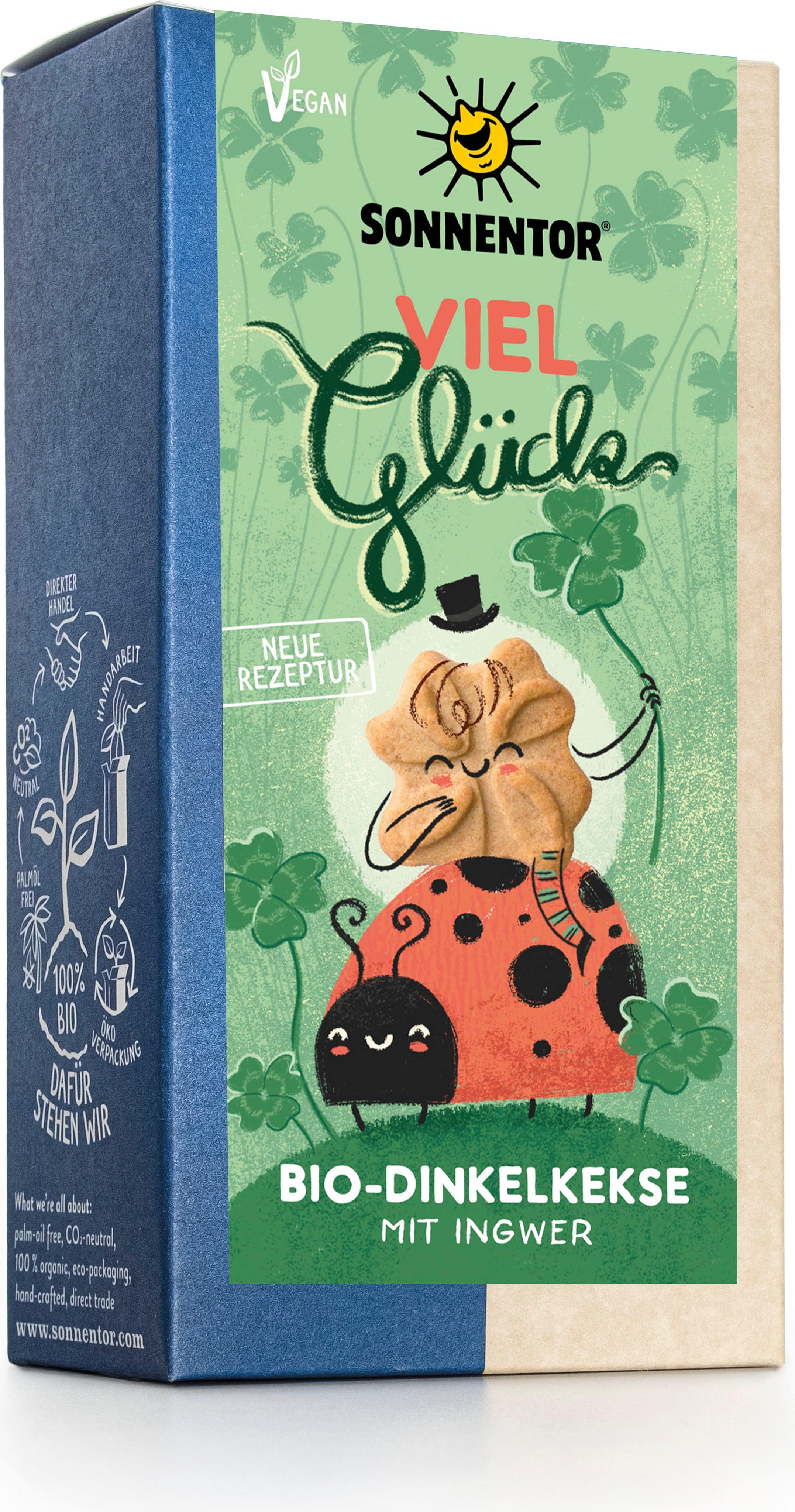 Una manera muy dulce de desear buena suerte. Estas deliciosas galletas tienen un toque de frutos secos debido a la harina de espelta. La masa se ha enriquecido con almendras, jengibre, fresas y una pizca de vainilla. Por supuesto, todos los ingredientes proceden de la agricultura biológica y se han producido con cariño en Waldviertel, en la Baja Austria. La receta es vegana y no contiene sal añadida ni aceite de palma.