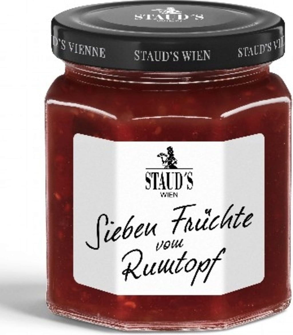 Rumtopf es una especialidad a base de frutas, ron y azúcar que se utiliza principalmente en regiones de habla alemana. Esta creación de edición limitada de STAUD'S contiene una mezcla de 7 frutas (fresas, frambuesas, guindas, albaricoques, melocotones, peras y ciruelas) aromatizadas con ron jamaicano. Un auténtico manjar envasado en un tarro de 250 g con una práctica tapa de rosca. El producto contiene alcohol.