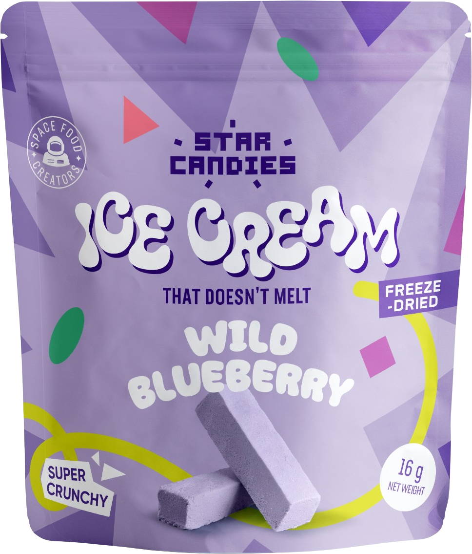 Descubre el helado liofilizado de arándanos STAR CANDIES de Super Garden. Un postre extraordinario, con un sabor afrutado y una textura crujiente y ligera que no se derrite: todo el placer del helado, sin necesidad de congelador.