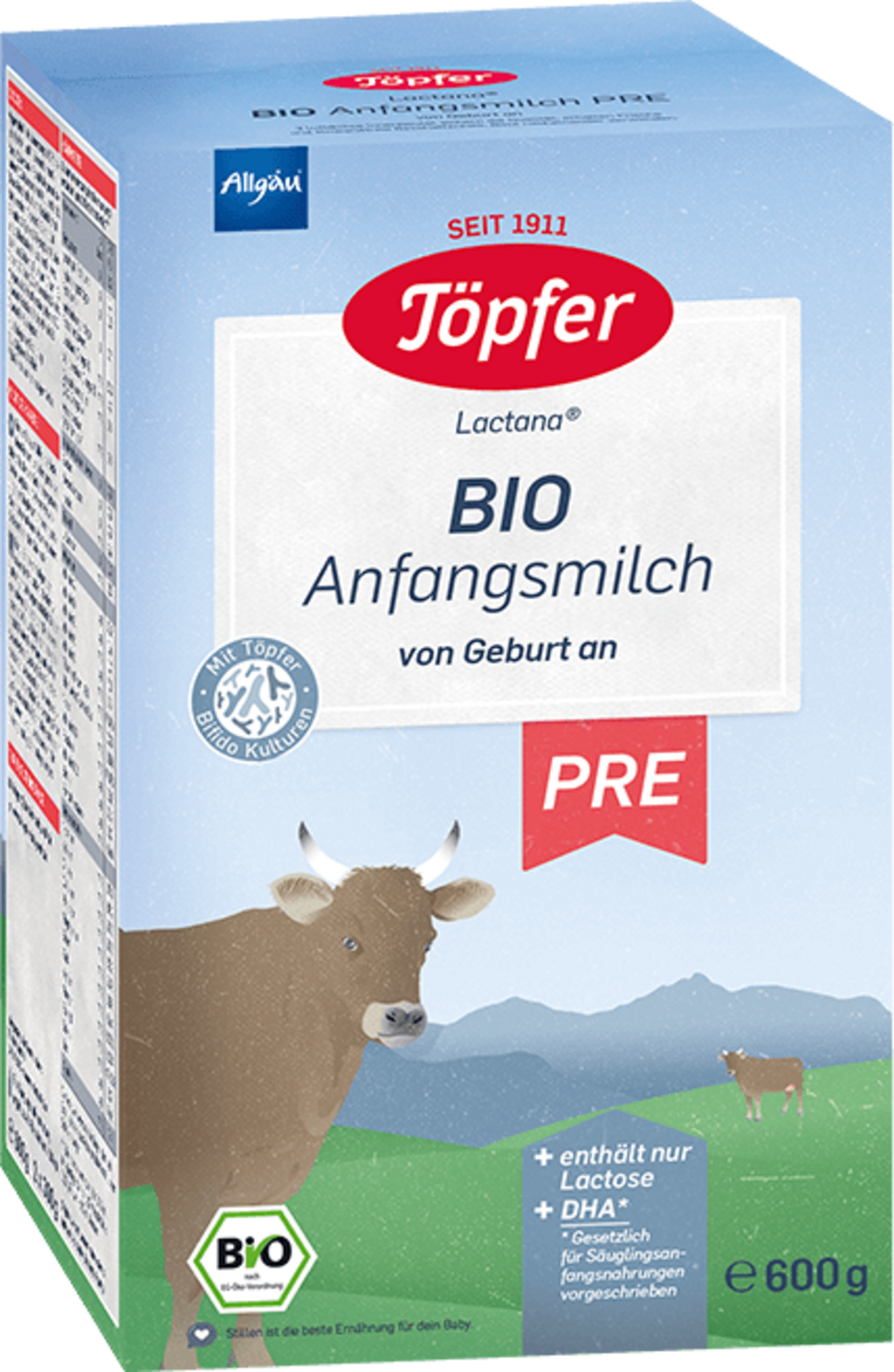 El preparado para lactantesa base de leche de vaca Allgäu PRE está especialmente diseñado para las necesidades especiales de los lactantes. Ideal como complemento de la leche materna, también puede administrarse como alimento único desde el nacimiento hasta el final de la lactancia materna.
