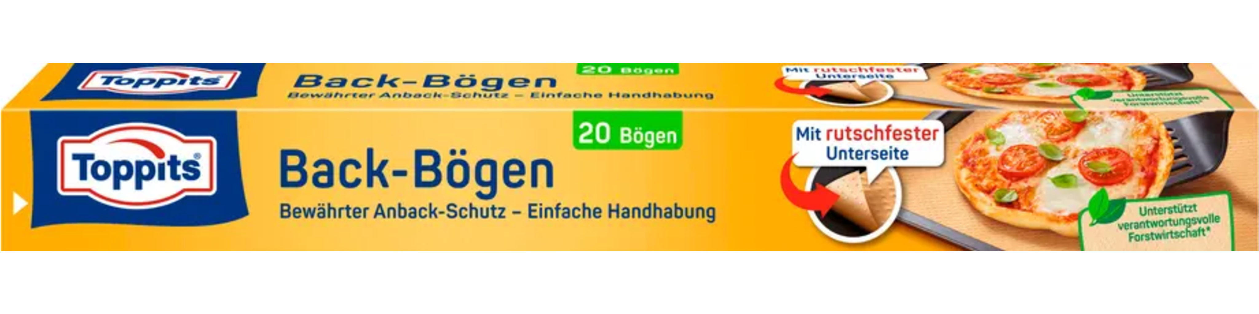 Una ventaja adicional: las hojas de papel de horno Toppits ya están precortadas en el tamaño estándar de una bandeja de horno, para un uso práctico e inmediato.