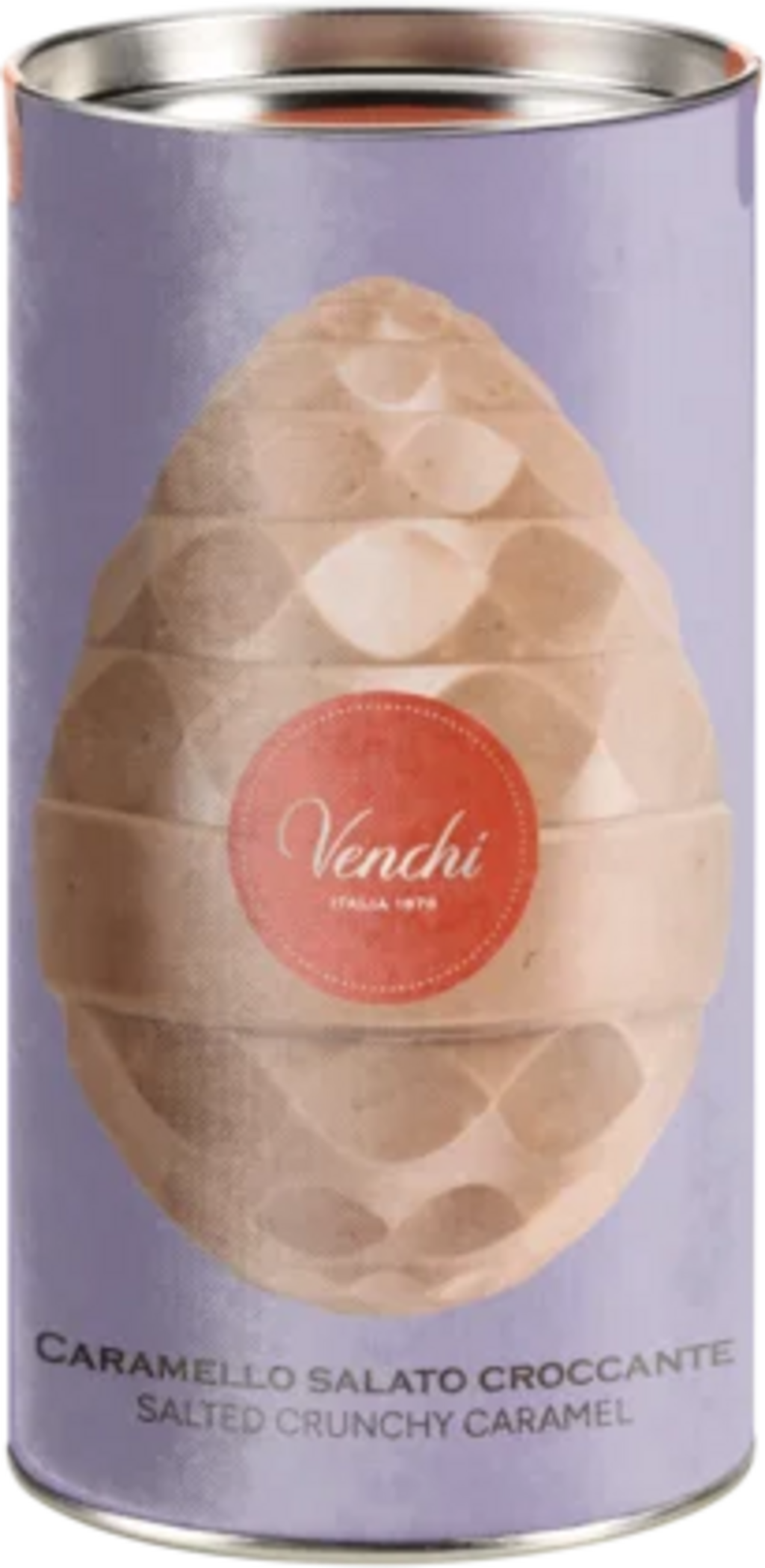 Descubre una refinada creación piamontesa con este exclusivo huevo de Pascua Venchi . La suave y envolvente cáscara de chocolate caramelizado se enriquece con crujientes granos de toffee salado que proporcionan un agradable contraste de texturas y una perfecta armonía entre dulce y salado. El huevo de 150 g se presenta en una elegante lata de 20 cm de altura, ideal como regalo festivo. En su interior también hay una pequeña sorpresa.