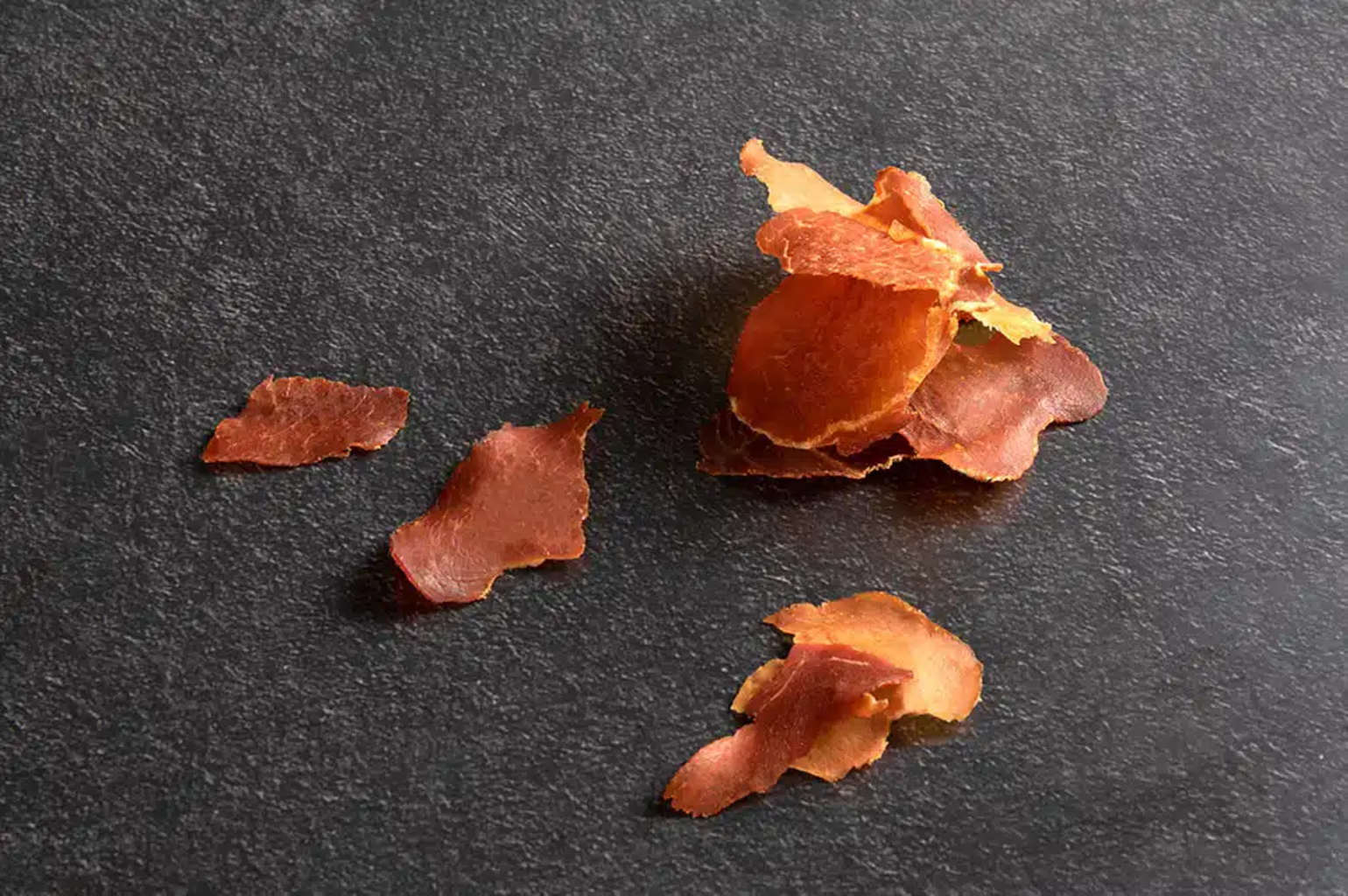 Snacks de cerdo ahumados finos y secados al aire. Perfectos para disfrutar en cualquier momento.