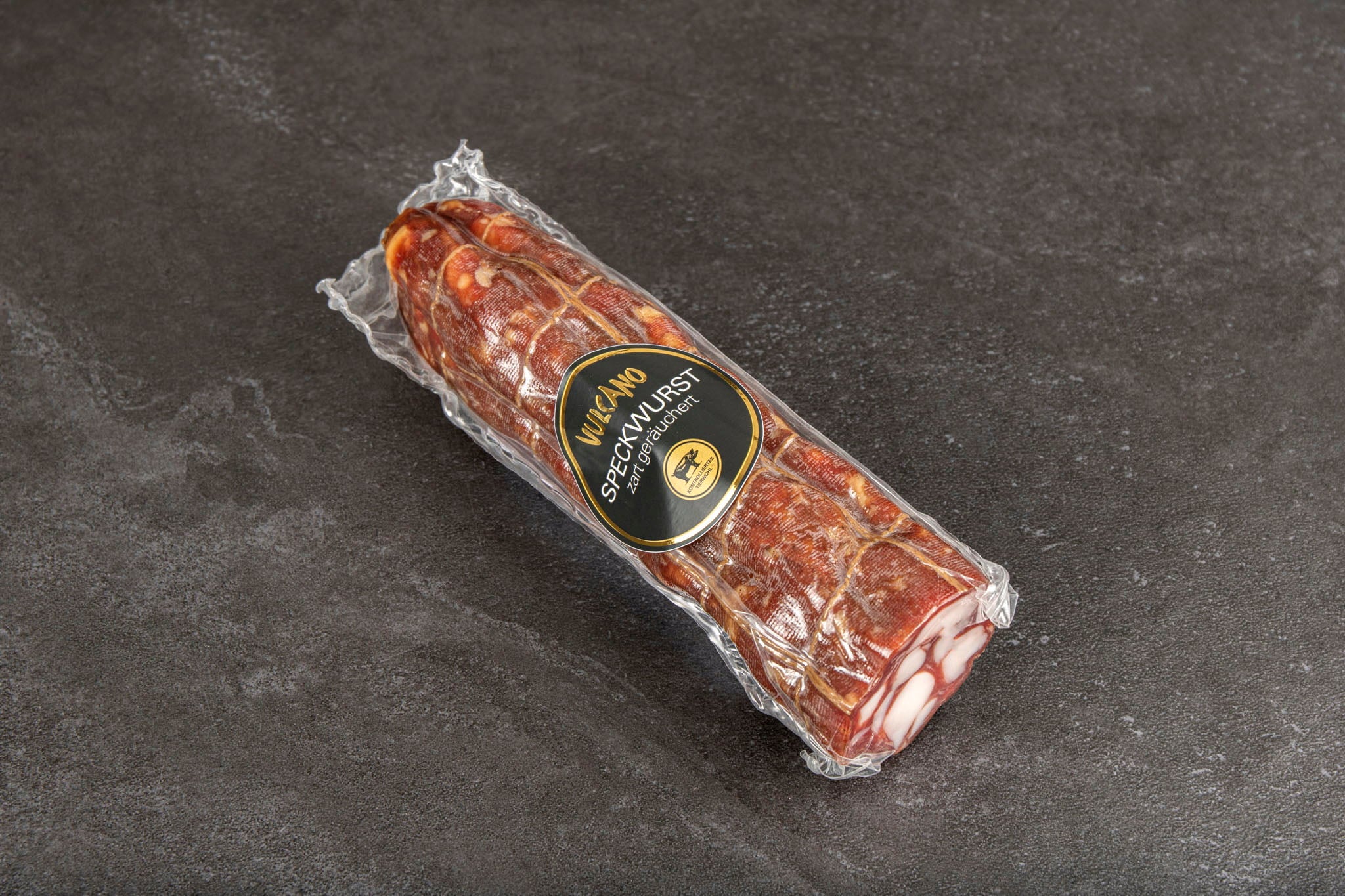 El salami campestre Vulcano encierra todo el sabor de la tradición: un perfecto equilibrio de especias y un intenso aroma que cautiva al primer bocado. Elaborado con carne de cerdo de alta calidad y tocino seleccionado, es ideal para la parrilla, la raclette o como sabroso tentempié a cualquier hora del día.