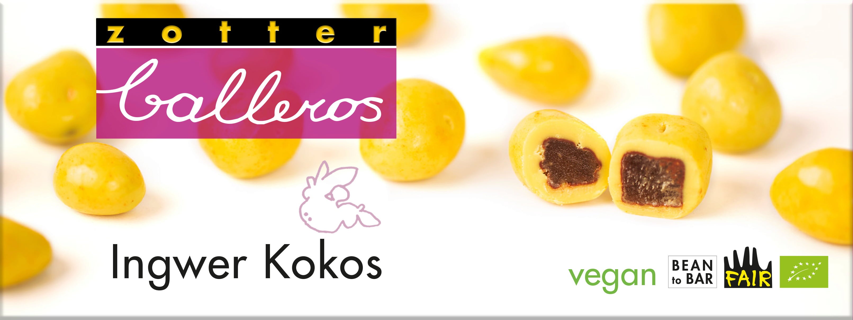 Zotter Schokoladen Bio Balleros Jengibre y Coco, 100 g