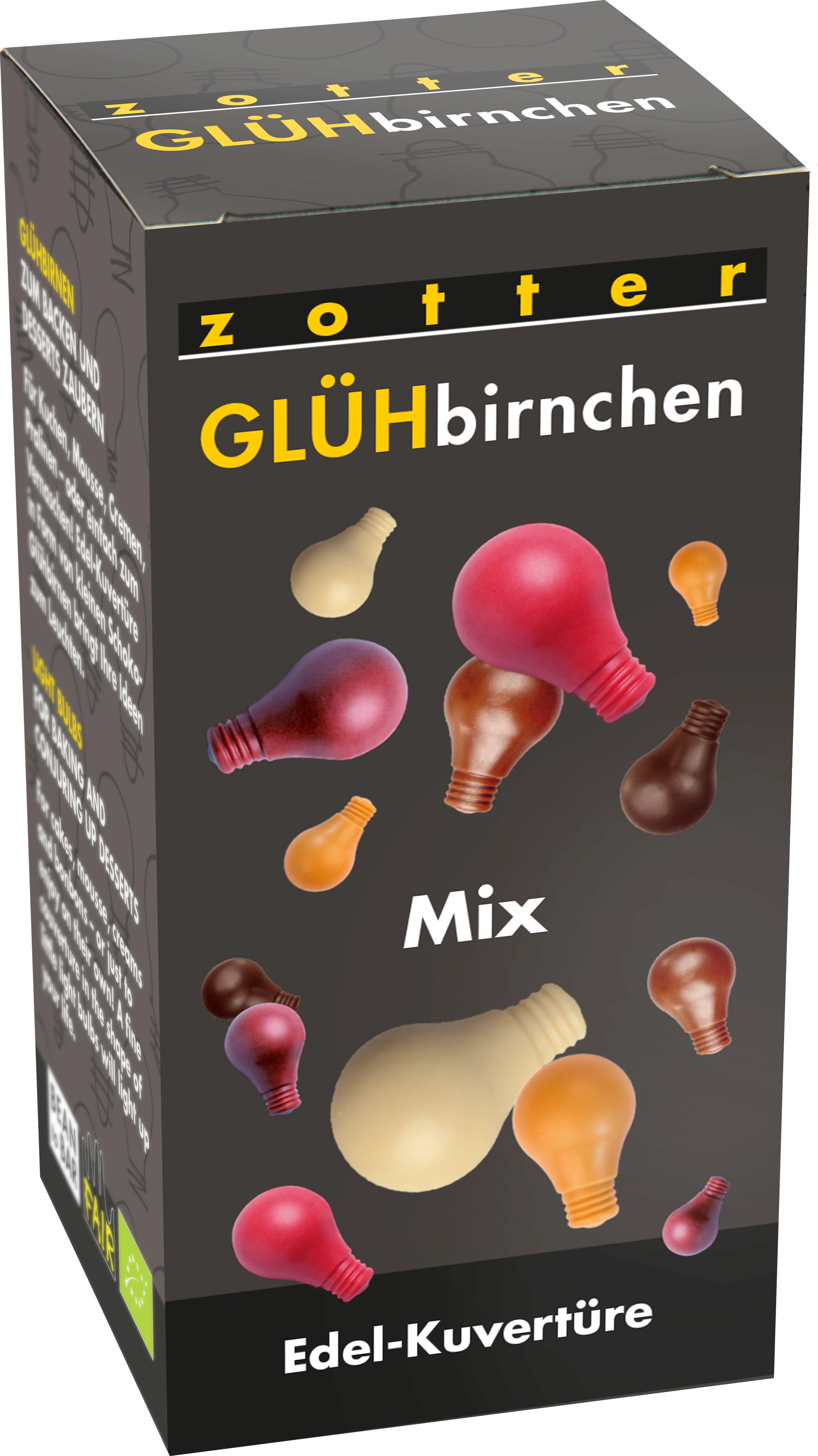 Estas adorables bombillas de chocolate no sólo tienen un sabor delicioso, sino que también llaman la atención por su forma original. La mezcla contiene 6 variedades diferentes de chocolate: blanco, con leche, negro, frambuesa, grosella y caramelo. Los preciosos y vivos colores provienen exclusivamente de las frutas y, por lo tanto, son absolutamente naturales.
