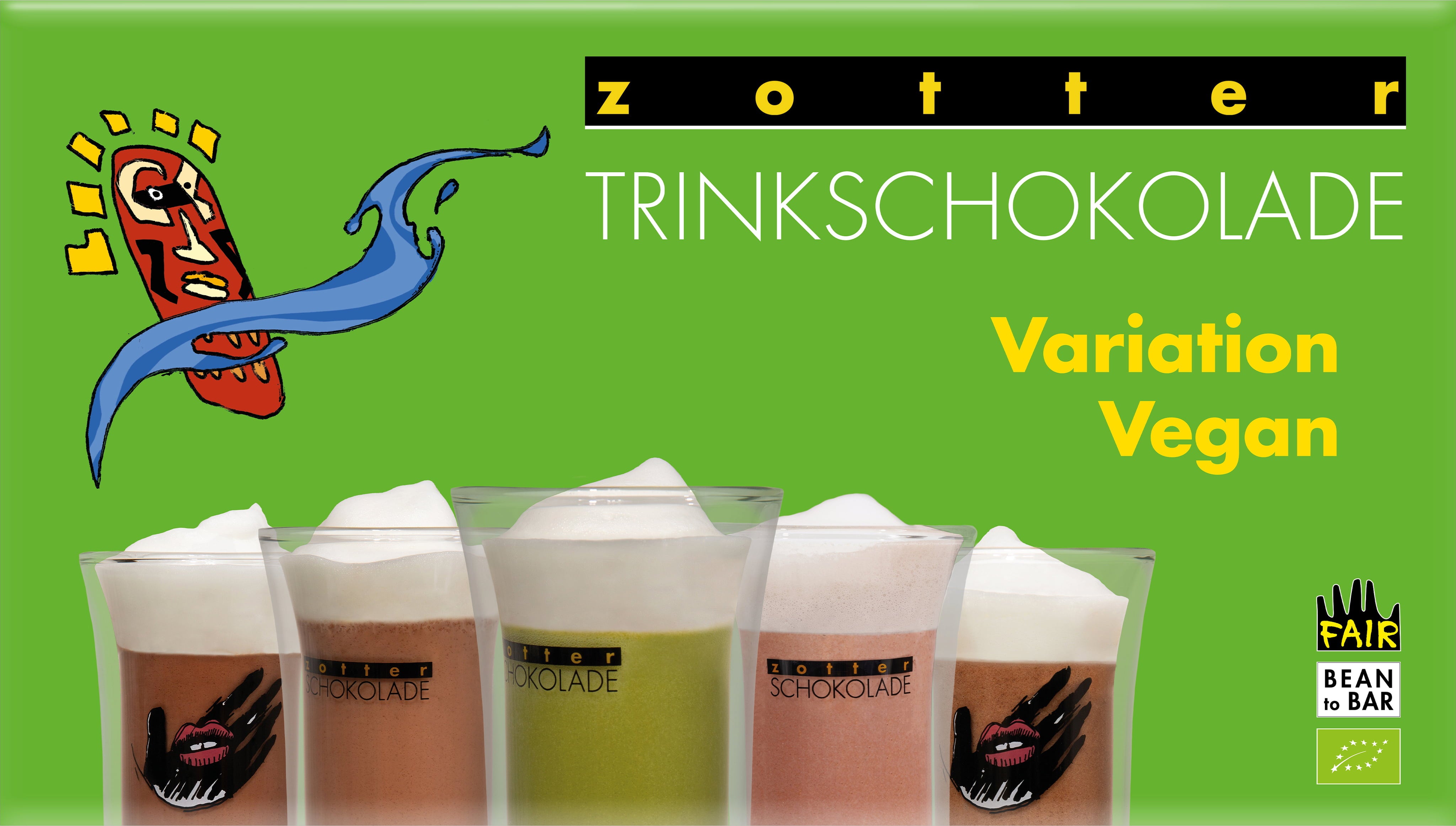 Este set contiene 5 variedades diferentes del famoso chocolate para beber de Zotter, todas ellas estrictamente veganas y sin ingredientes de origen animal.