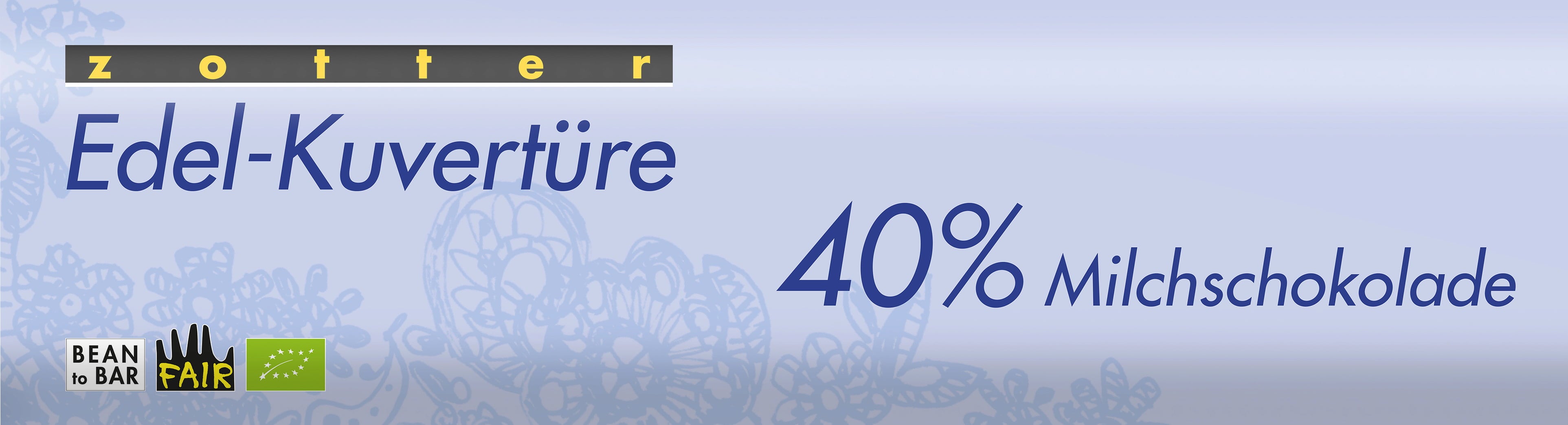 rohrzucker[1], manteca de cacao[1], Leche entera en polvo[2], Pasta de cacao[1], leche desgrasada en polvo[2], Lecitina de soja[3], vainas de vainilla en polvo[2], Sal de roca, 40 % contenido mínimo de cacao