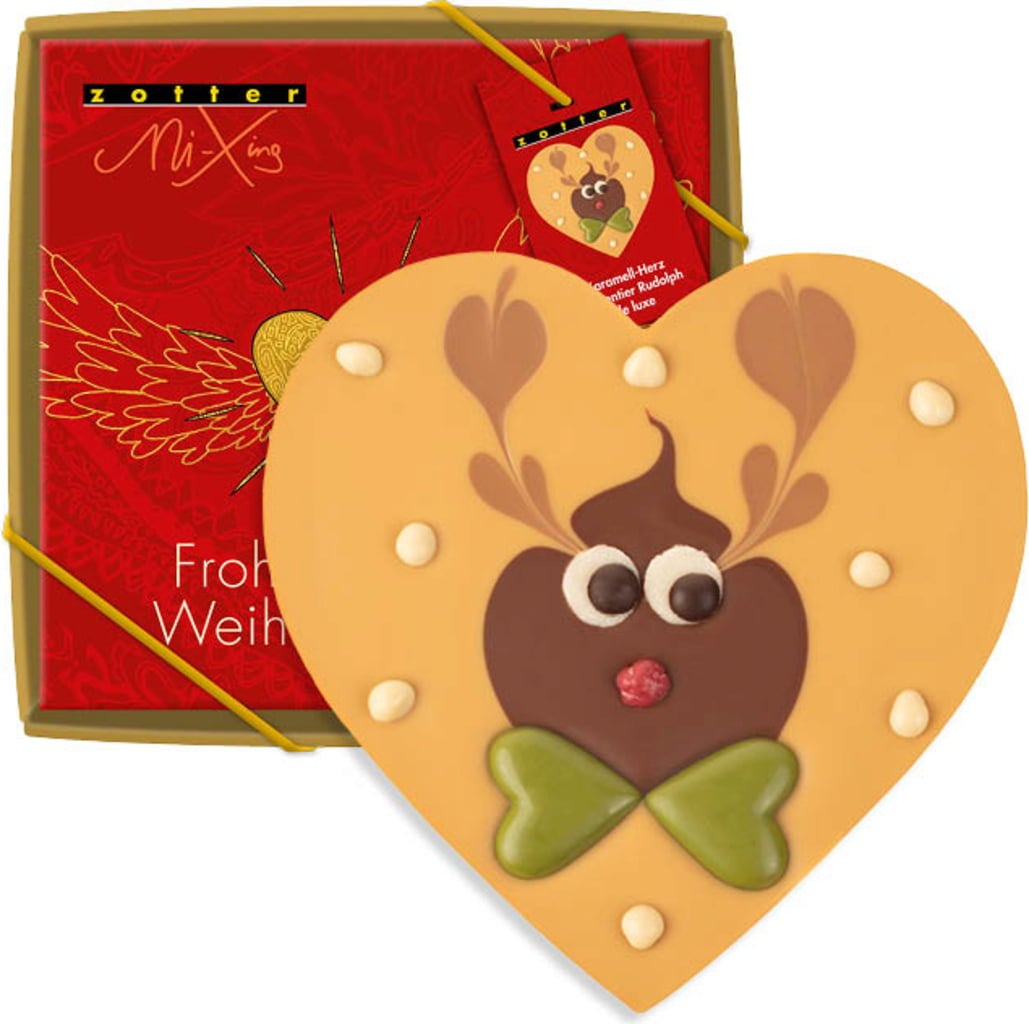 Zotter Schokoladen Corazón de Caramelo con Reno Rudolph de Luxe Bio, 100 g