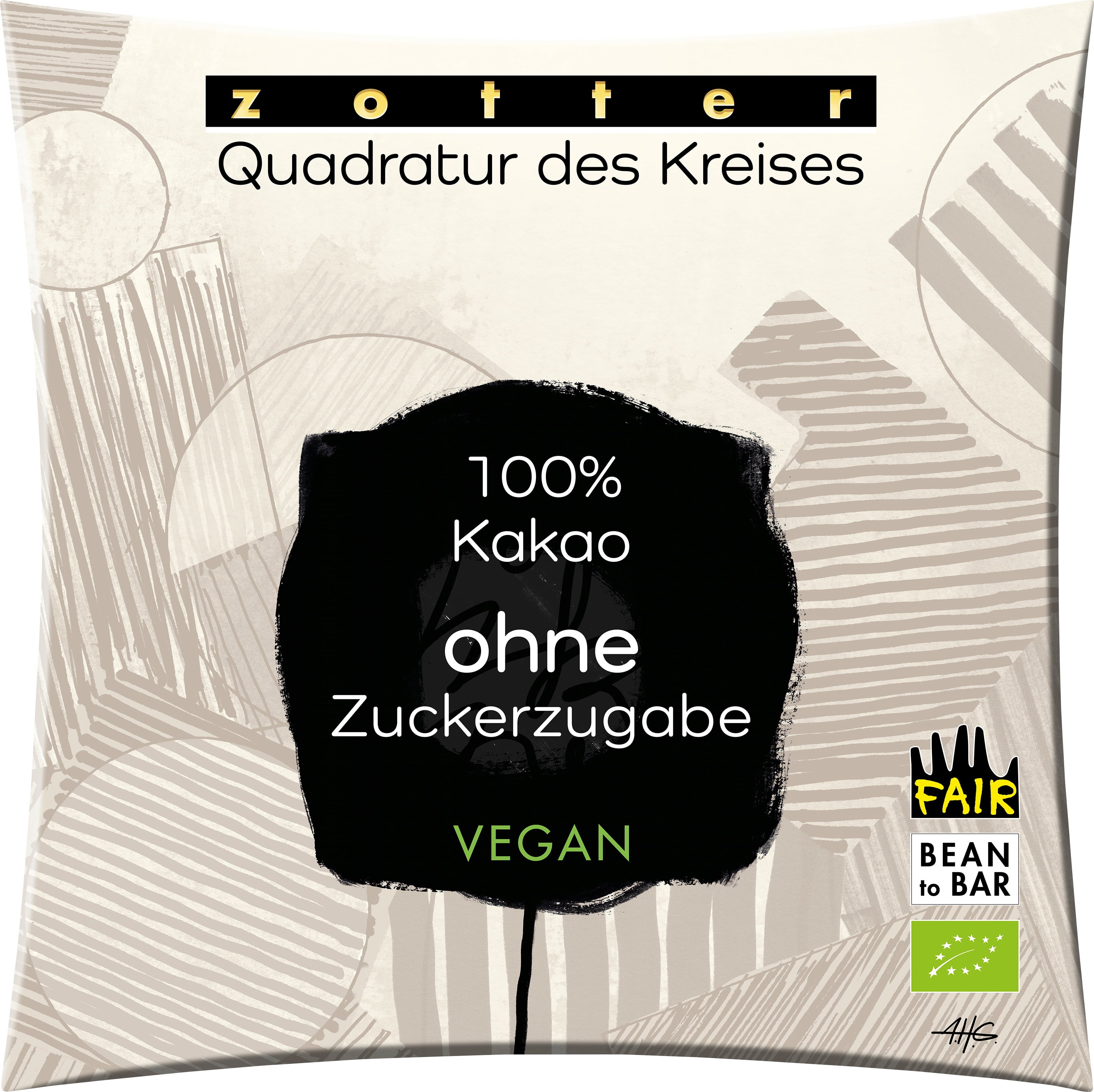 Zotter Schokoladen Cuadratura del Círculo Bio - Chocolate Negro al 100% sin Azúcar, 70 g