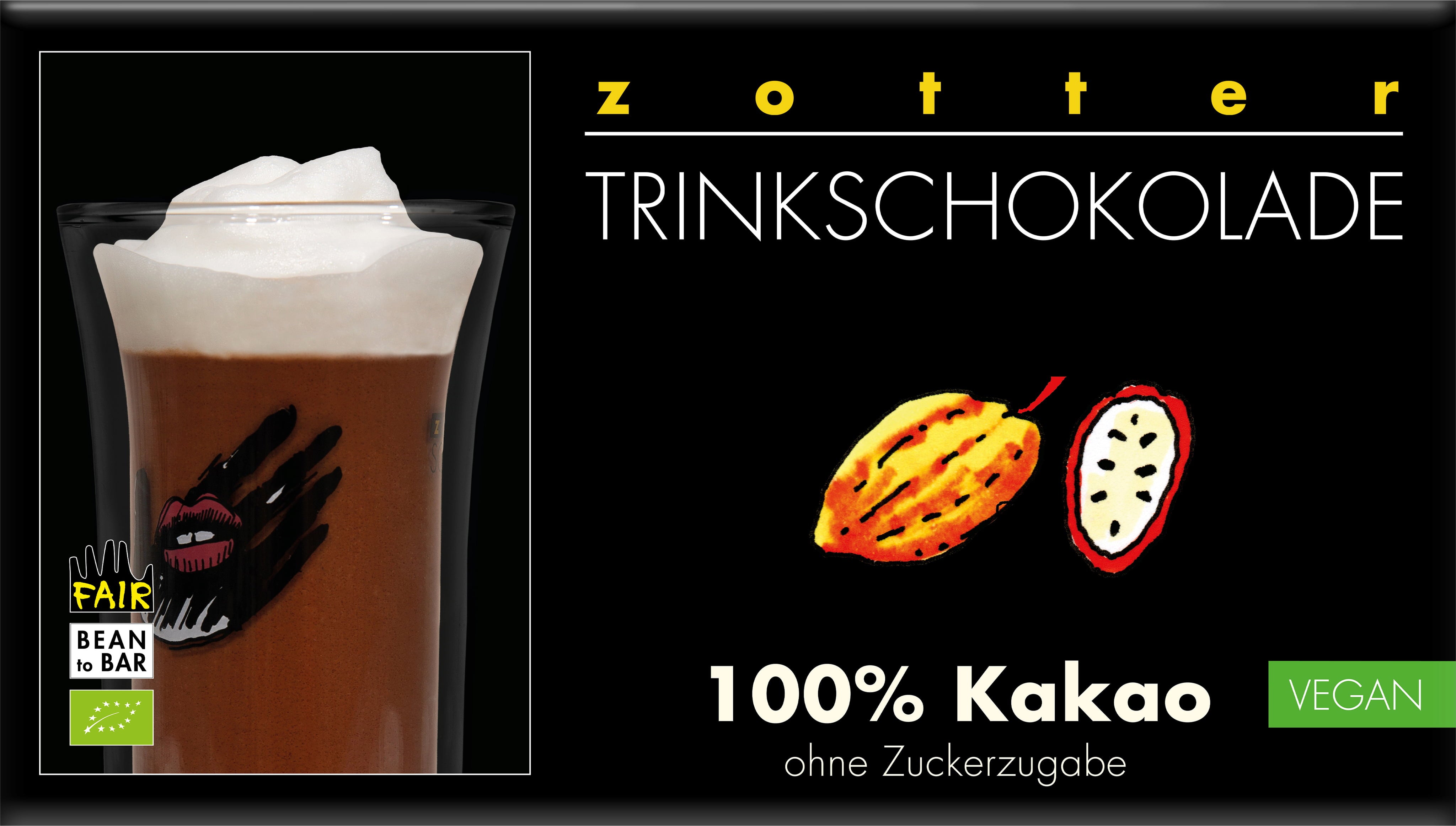 Zotter Schokoladen Organic Drinking Chocolate 100% Cacao, 110 g