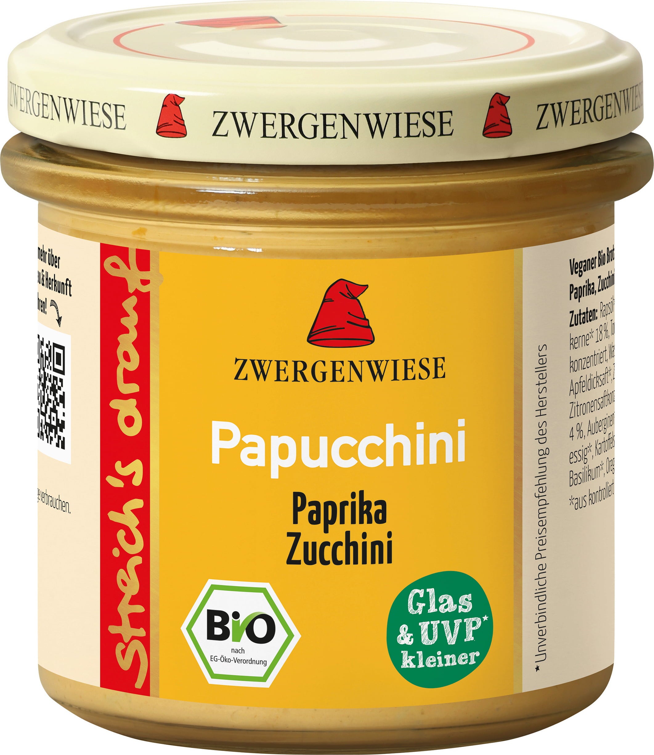 ¡El untable papucchini de Zwergenwiese es más que un simple producto para untar! Esta delicia vegana de pipas de girasol está enriquecida con pimientos y calabacines y tiene un sabor que enamora a todos los paladares. También es muy versátil en la cocina: puedes disfrutarlo sobre pan fresco o picatostes, añadirlo a la pizza o para sazonar pastas y arroces o como salsa para acompañar verduras... en definitiva, ¡seguro que el tarro se vaciará en un instante!